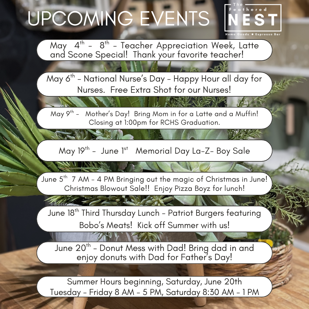 Get A Gift Card TodayLooking for the perfect gift? Treat your loved ones to a Feathered Nest gift card! Talk to our sales assoicate for details.